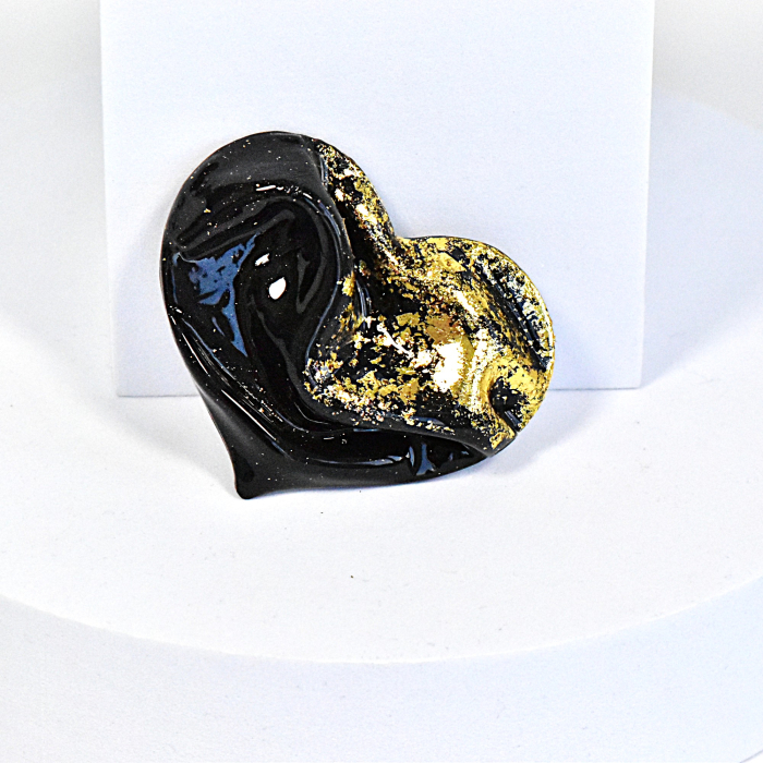 Broșele din lut polimeric și rășină epoxidică, lucrate manual, sunt bijuterii unice care îmbină arta și eleganța într-o formă compactă. Fiecare broșă este realizată cu atenție la detalii, modelată din lut polimeric pentru a crea forme și motive distinctive, de la flori stilizate la modele abstracte. Stratul de rășină epoxidică adaugă o strălucire clară și protejează designul, oferindu-i durabilitate și un finisaj rafinat.