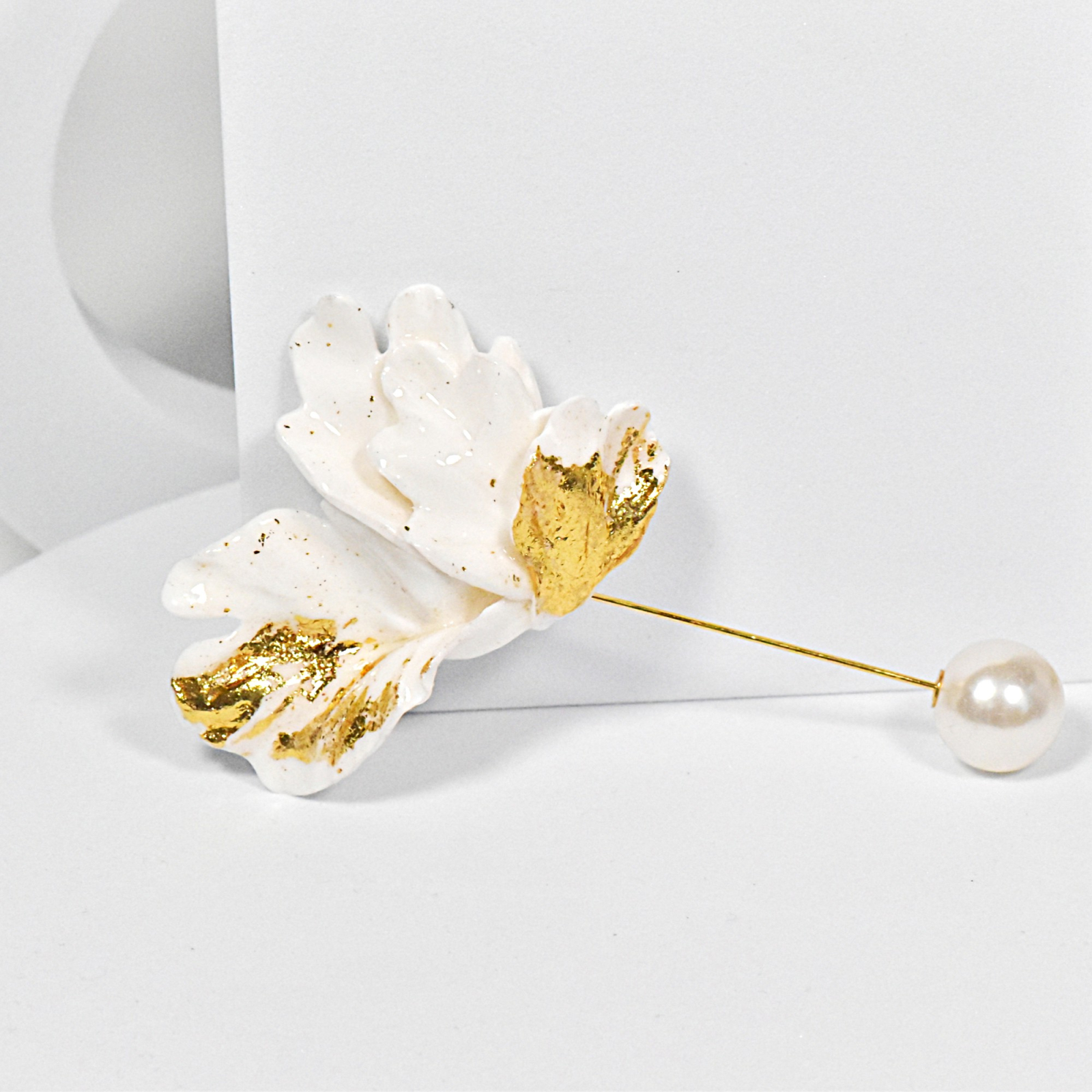 Broșele din lut polimeric și rășină epoxidică, lucrate manual, sunt bijuterii unice care îmbină arta și eleganța într-o formă compactă. Fiecare broșă este realizată cu atenție la detalii, modelată din lut polimeric pentru a crea forme și motive distinctive, de la flori stilizate la modele abstracte. Stratul de rășină epoxidică adaugă o strălucire clară și protejează designul, oferindu-i durabilitate și un finisaj rafinat.