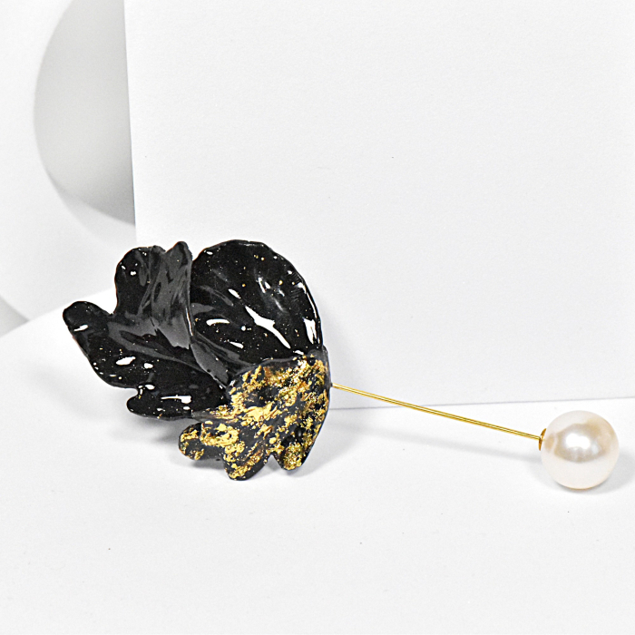 Broșele din lut polimeric și rășină epoxidică, lucrate manual, sunt bijuterii unice care îmbină arta și eleganța într-o formă compactă. Fiecare broșă este realizată cu atenție la detalii, modelată din lut polimeric pentru a crea forme și motive distinctive, de la flori stilizate la modele abstracte. Stratul de rășină epoxidică adaugă o strălucire clară și protejează designul, oferindu-i durabilitate și un finisaj rafinat.
