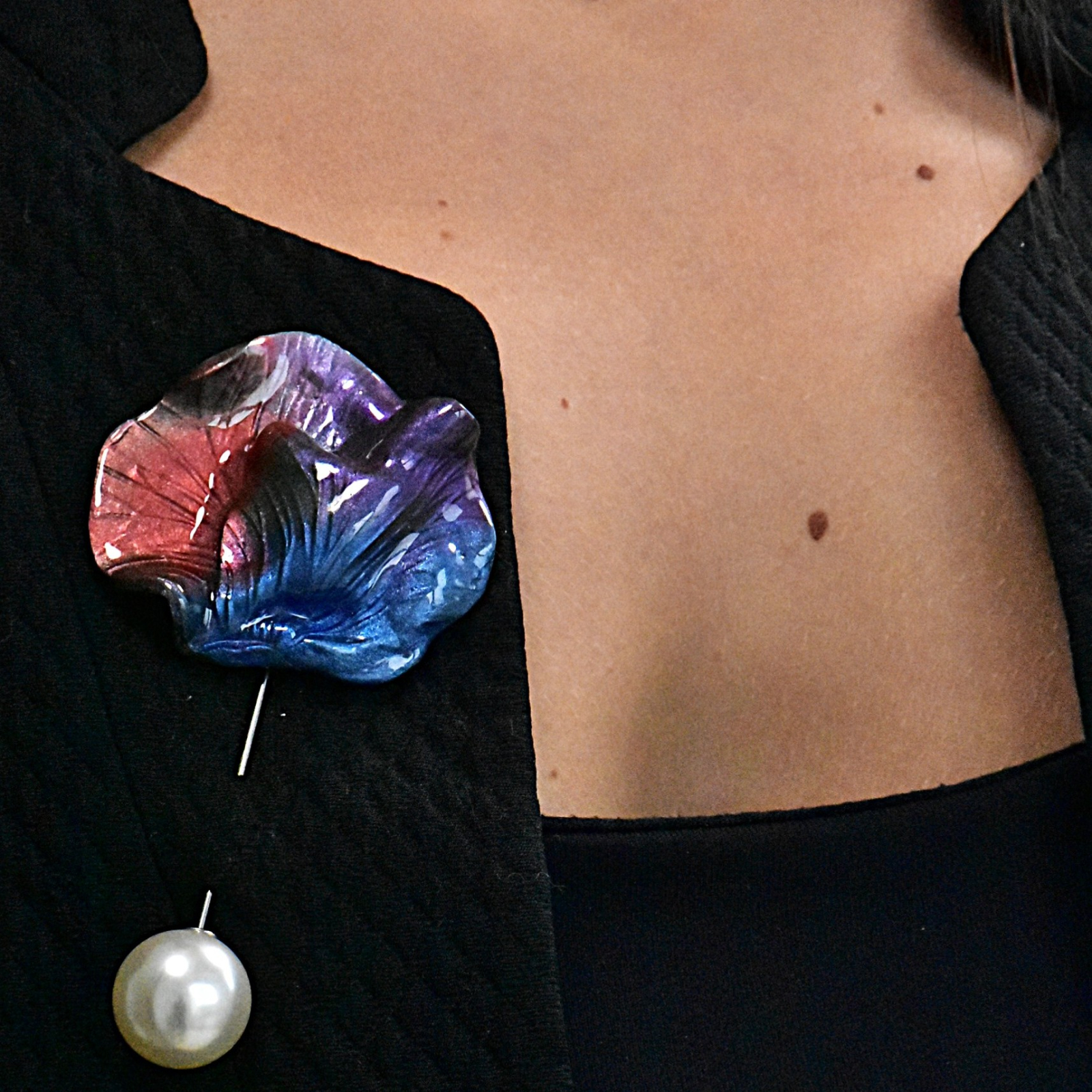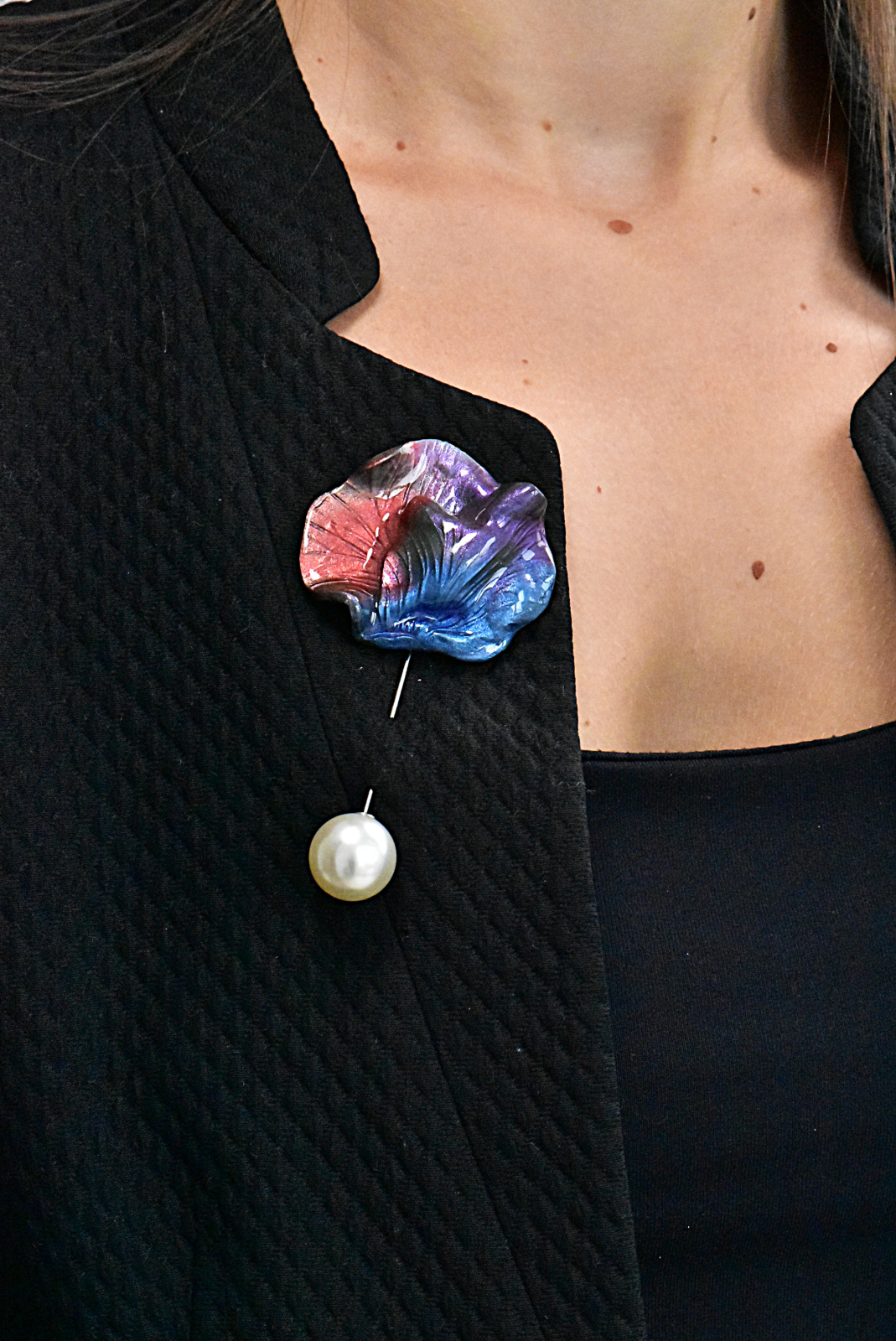Broșele din lut polimeric și rășină epoxidică, lucrate manual, sunt bijuterii unice care îmbină arta și eleganța într-o formă compactă. Fiecare broșă este realizată cu atenție la detalii, modelată din lut polimeric pentru a crea forme și motive distinctive, de la flori stilizate la modele abstracte. Stratul de rășină epoxidică adaugă o strălucire clară și protejează designul, oferindu-i durabilitate și un finisaj rafinat.