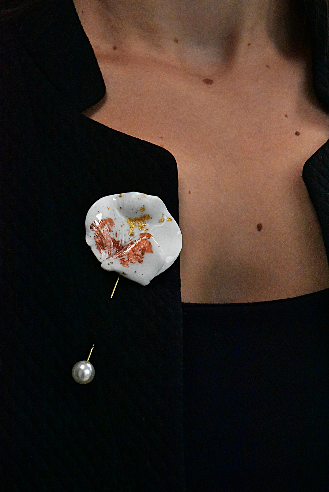 Broșele din lut polimeric și rășină epoxidică, lucrate manual, sunt bijuterii unice care îmbină arta și eleganța într-o formă compactă. Fiecare broșă este realizată cu atenție la detalii, modelată din lut polimeric pentru a crea forme și motive distinctive, de la flori stilizate la modele abstracte. Stratul de rășină epoxidică adaugă o strălucire clară și protejează designul, oferindu-i durabilitate și un finisaj rafinat.
