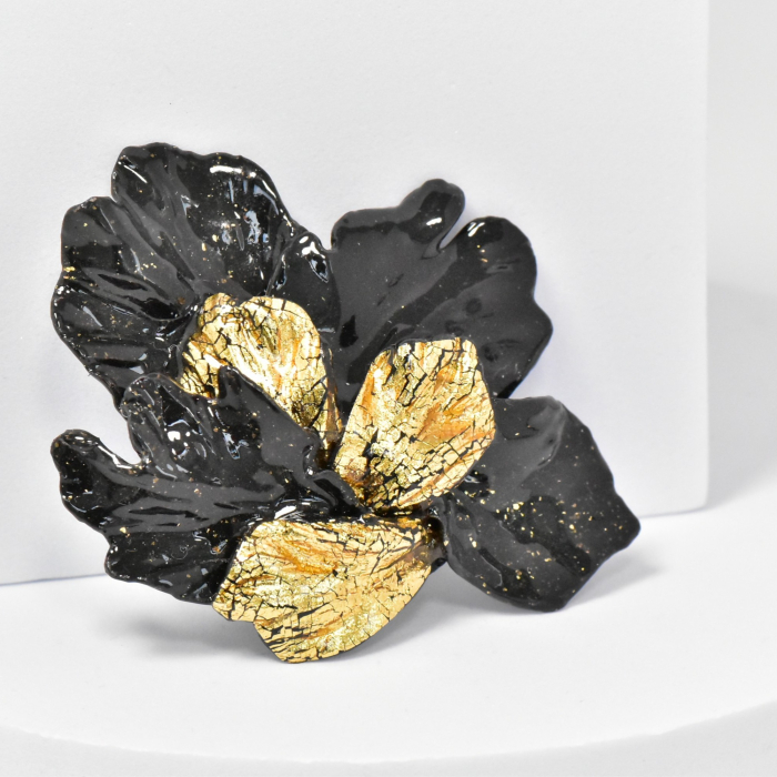 Broșele din lut polimeric și rășină epoxidică, lucrate manual, sunt bijuterii unice care îmbină arta și eleganța într-o formă compactă. Fiecare broșă este realizată cu atenție la detalii, modelată din lut polimeric pentru a crea forme și motive distinctive, de la flori stilizate la modele abstracte. Stratul de rășină epoxidică adaugă o strălucire clară și protejează designul, oferindu-i durabilitate și un finisaj rafinat.
