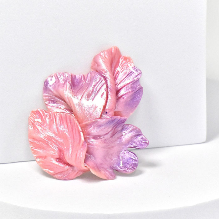 Broșele din lut polimeric și rășină epoxidică, lucrate manual, sunt bijuterii unice care îmbină arta și eleganța într-o formă compactă. Fiecare broșă este realizată cu atenție la detalii, modelată din lut polimeric pentru a crea forme și motive distinctive, de la flori stilizate la modele abstracte. Stratul de rășină epoxidică adaugă o strălucire clară și protejează designul, oferindu-i durabilitate și un finisaj rafinat.